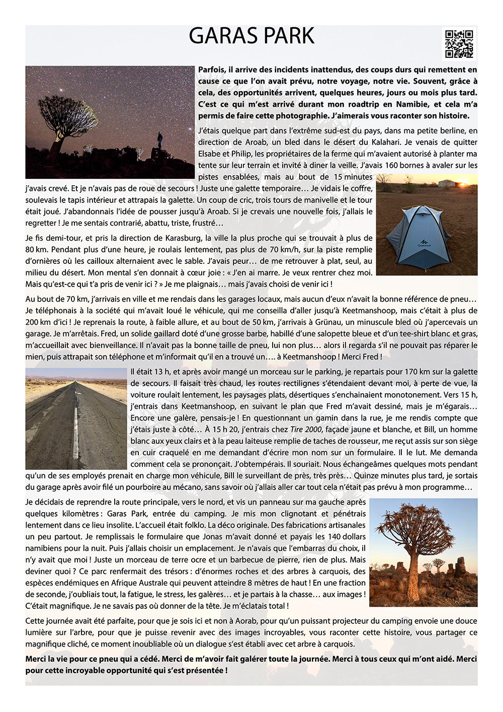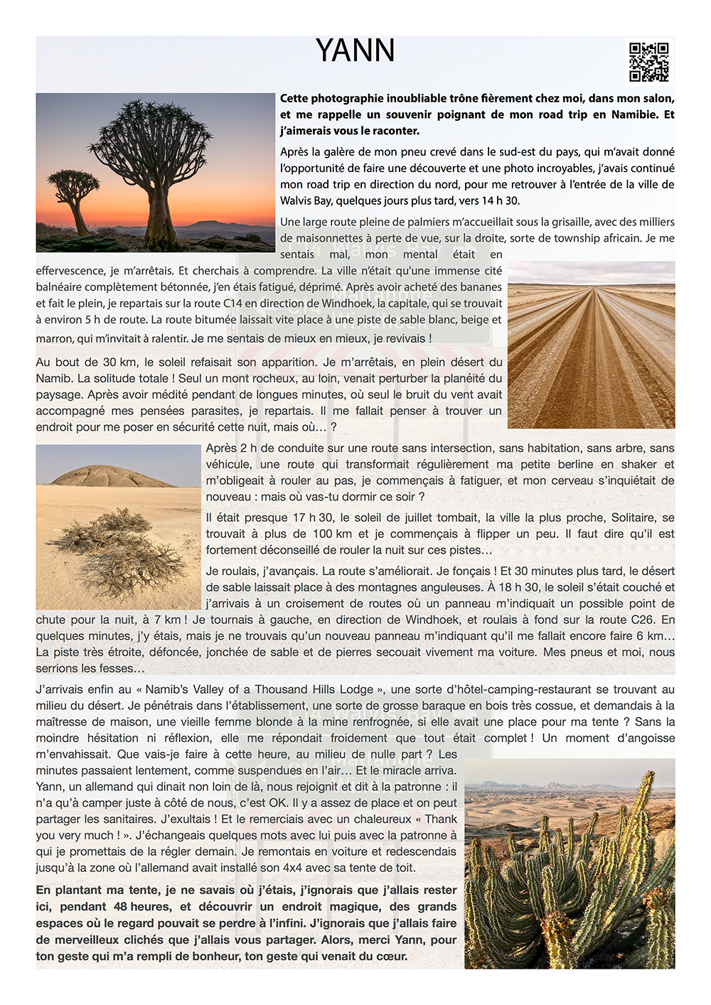 Des histoires de voyages, des rencontres inoubliables, des paysages d'une beauté touchante, des évènements inattendus... bref, de l'aventure !